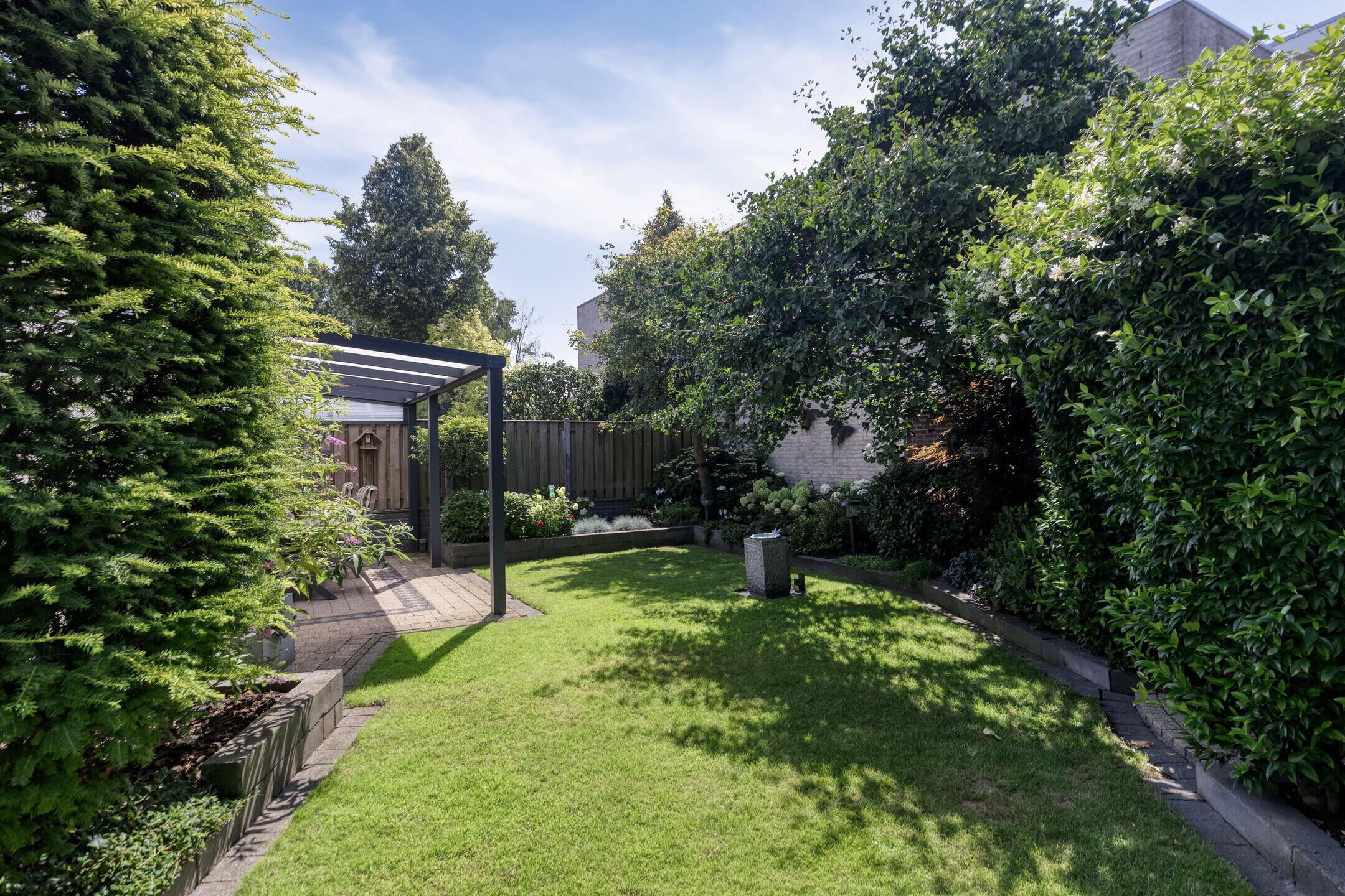 De achtertuin is werkelijk een verlengstuk van je woonruimte. Vanuit de woonkamer stap je onder de vaste overkapping, ideaal voor lange zomeravonden of een regenachtige koffiepauze. Het terras is strak aangelegd en omringd door groen, waardoor je hier volop privacy en rust ervaart. Aan de voorzijde van het huis is een handige poort naar de tuin. Een veelzijdige buitenruimte waar je elke dag van geniet!