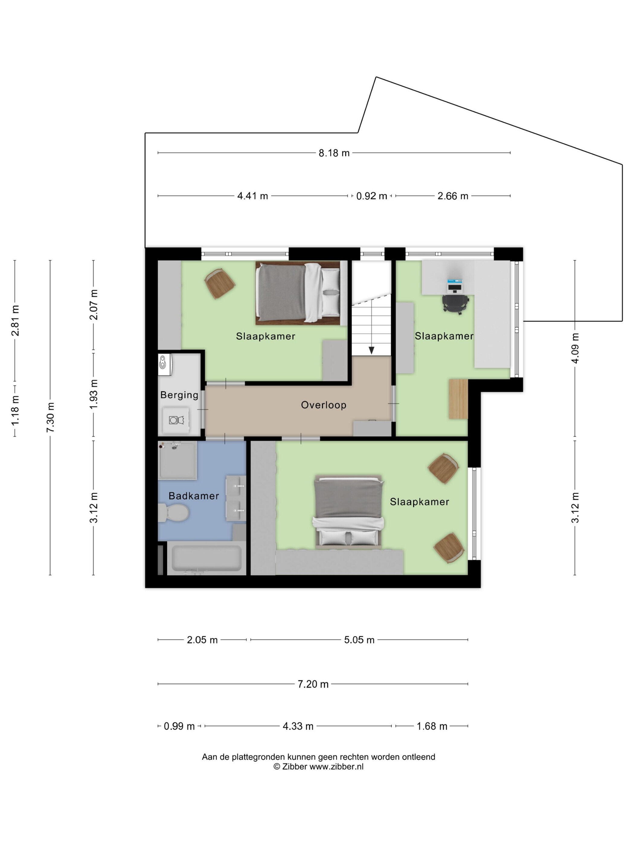 Op de eerste verdieping vind je drie slaapkamers, waarvan twee ruim en één perfect als werkkamer of kinderkamer. Ook hier loopt de laminaat vloer stijlvol door en zijn de wanden strak afgewerkt. Alles straalt rust en verzorging uit.